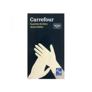 | 100 Guantes desechables de Látex Carrefour P/M - Blanco |