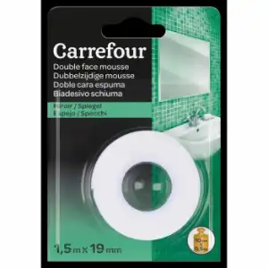 En Carrefour, el precío más bajo de Cinta Adhesiva Doble Cara Interior Efecto Espejo 1,5 m x 19 mm ha sido de 2.69 € el día 23/07/2023.