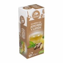 Té verde con jengibre y limón en bolsitas carre...