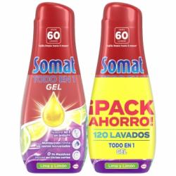 Gel para lavavajillas lima y limón Todo en 1 Somat 60 lavados.